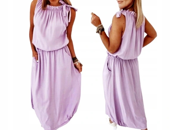 Платье макси, бант на бретеле, карманы по бокам