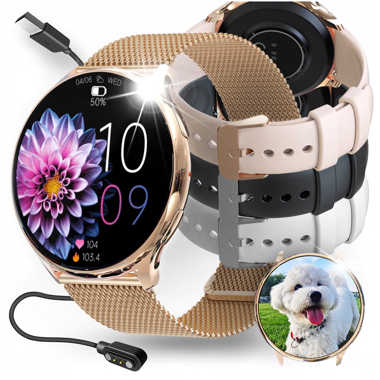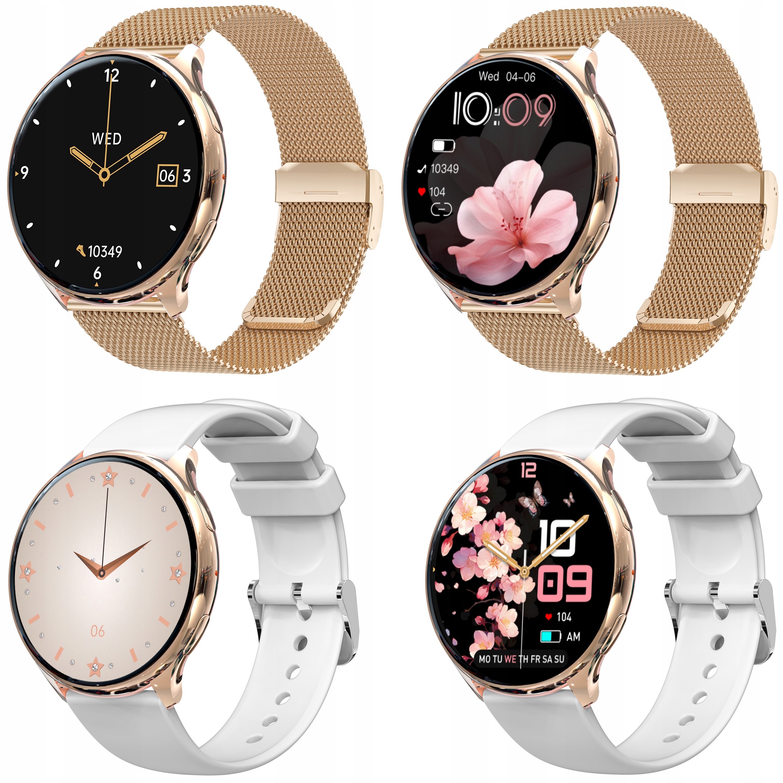 - ✅ Женские умные часы в цвете розового золотого золота 41_✅ розовый золотой золотой браслет сетки 42_✅ розовый силиконовый ремешок 43_✅✅ Черный силиконовый полоса 44_✅ Белый силиконовый ремешок для подарка