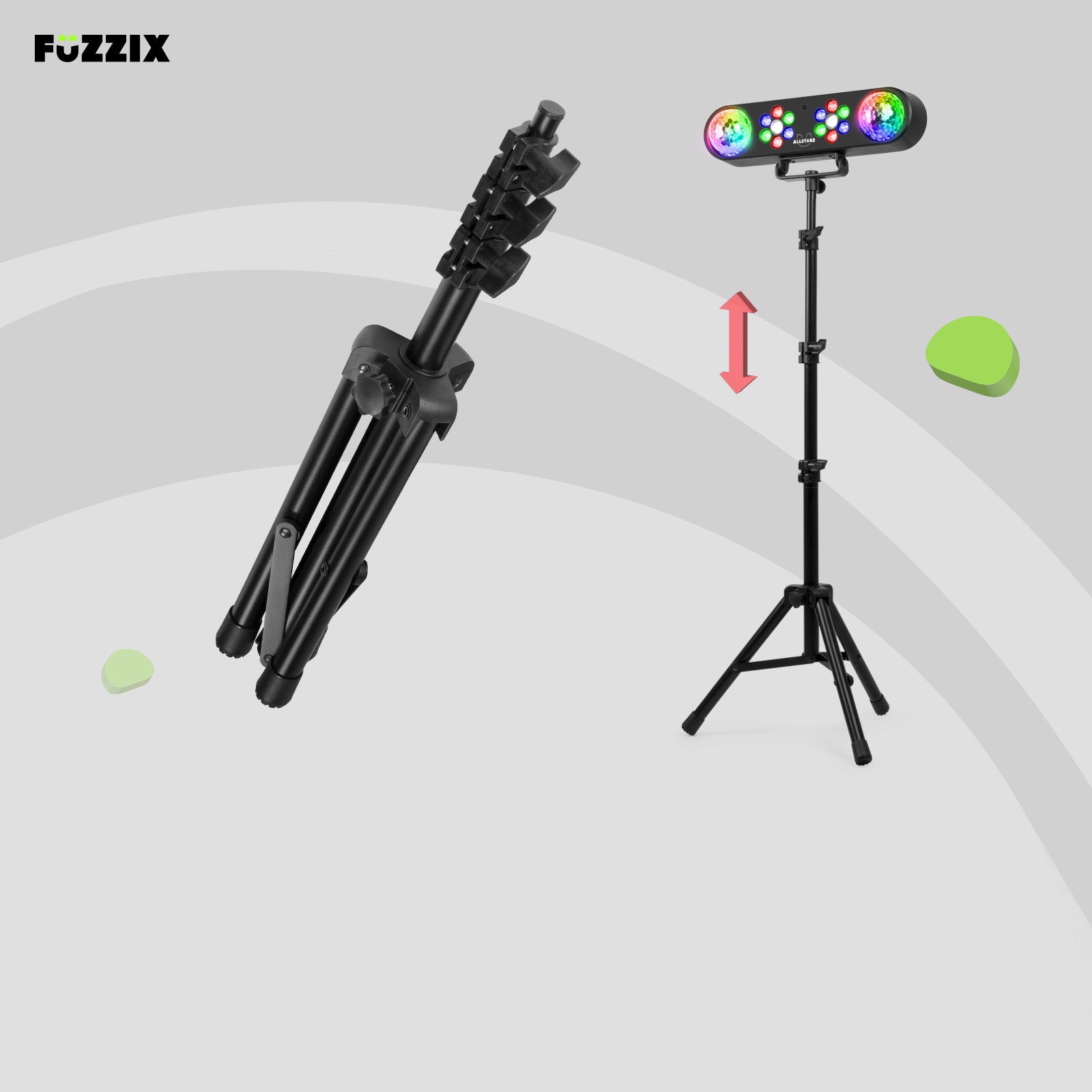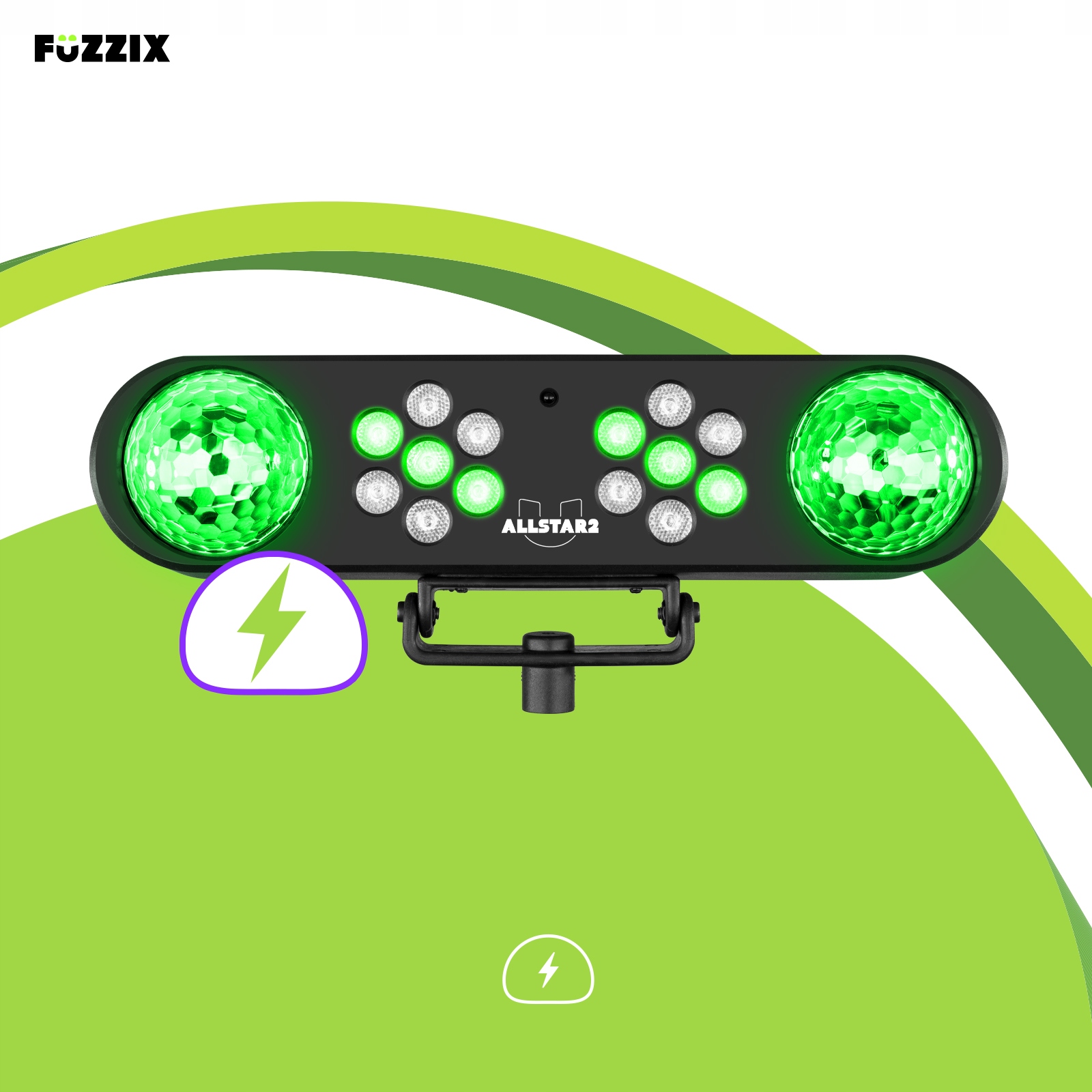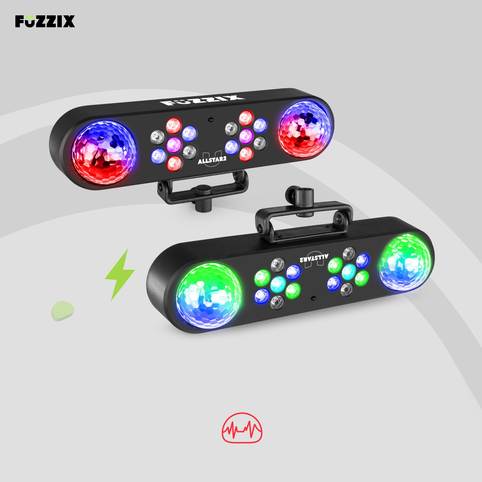 Управлять диско-светильником AllStar2 легко благодаря входящему в комплект пульту дистанционного управления. Выберите программу и установите скорость, а свет дискотеки сделает все остальное. Вы также можете выбрать различные эффекты, такие как стробоскоп или эффект затухания. Встроенный микрофон позволяет ему реагировать на звук, поэтому вам не придется об этом беспокоиться. Поэтому Fuzzix AllStar2 — лучший выбор для уютной домашней вечеринки, где вам нужно красочное и подвижное освещение.