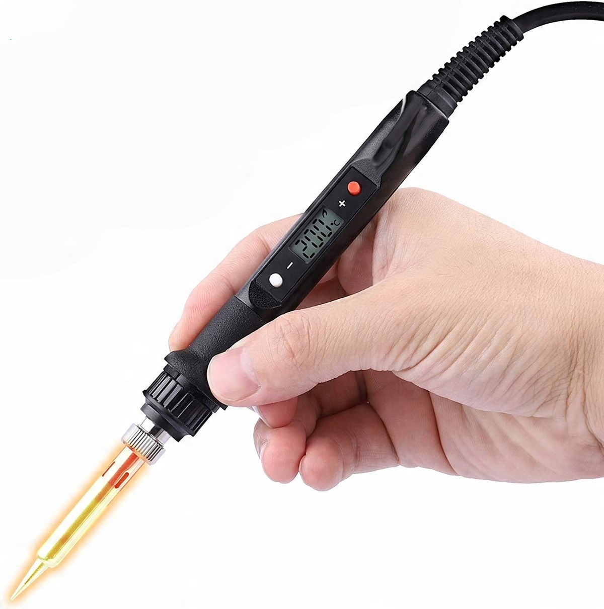 Регулировка температуры: Паяльник предлагает регулировку температуры от 200 до 450°C, что в сочетании с высокой мощностью обеспечивает быстрый нагрев.